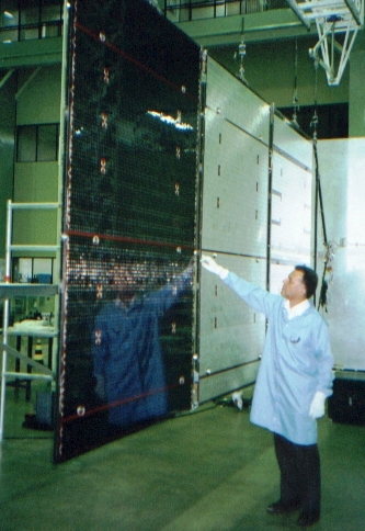 CBERS solar panel inspection at INPE's LIT in São José dos Campos, São Paulo