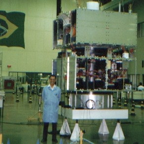 A foto acima mostra parte de um modelo de um dos primeiros satélites do Programa CBERS montado para testes no Laboratório de Integração e Testes (LIT) do INPE em São José dos Campos.